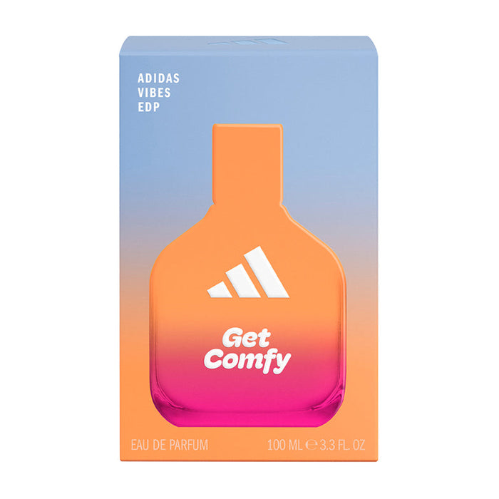 Feel the vibe and feel comforted with this new adidas fragrance. Vibes Get Comfy Eau de Parfum, proven to make you feel positive*. Calming and warming, when you just want to hang out and relax, comfortably. With notes of Vanilla and Mandarin. The long lasting fragrance, with orange natural essential oil, has a vegan formula and is dermatologically tested. The packaging is made with recycled materials ** Discover the full Vibes fragrance collection. 6 mood fragrances, designed for all. *81% agreement in a consumer test of 106 participants. **96% PCR CAP, 25% PCR Glass, FSC carton